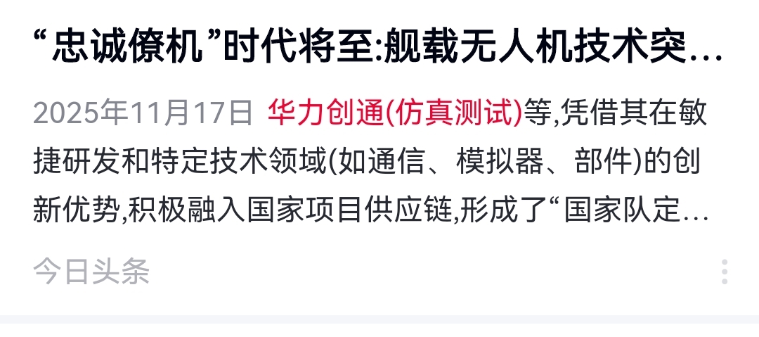 $华力创通(SZ300045)$ 华力创通(仿真测试)等,凭借其在敏捷研发和特定技术领域(如通信、模拟器、部件)的创新优势,积极融入国家项目供应链,形成了“国家队定标、民企配套”的产业生态