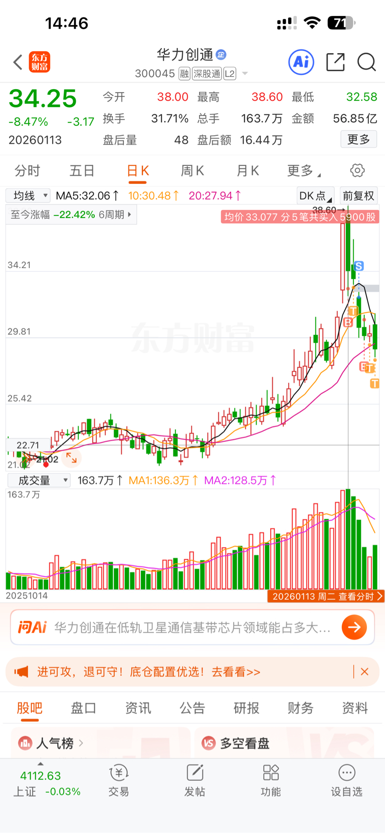 $华力创通(SZ300045)$ 扛不住了,28.75,88