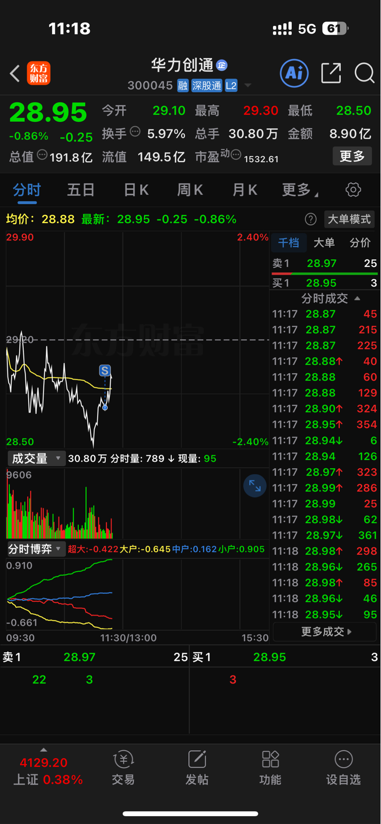 $华力创通(SZ300045)$ 真是不走不动,再见了