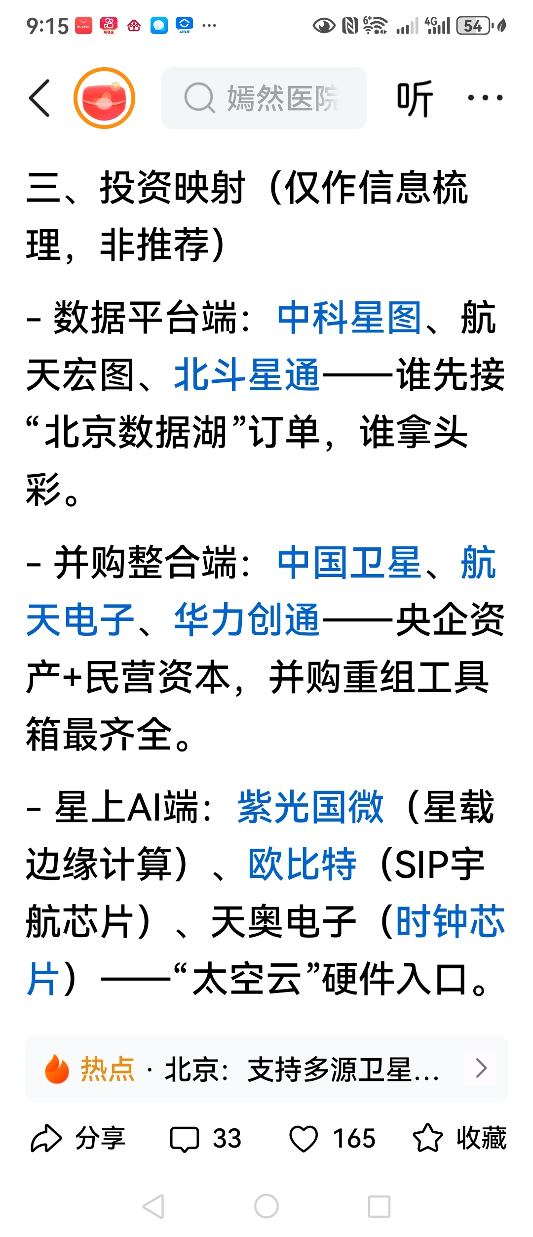 $华力创通(SZ300045)$ 北京支持卫星产业链