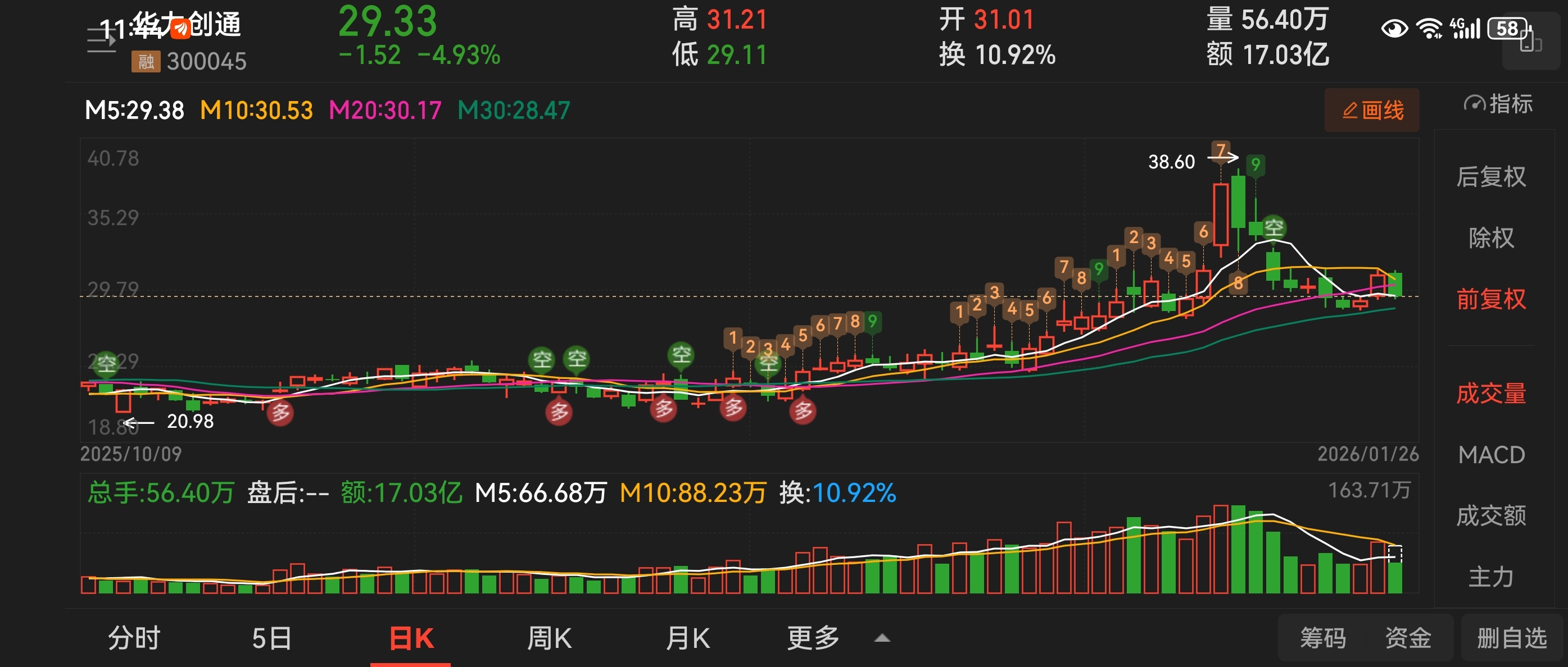 华力截止早盘收盘,散户买入三亿,周五主力资金全部止盈离场!剩下的走势看下午资金回流情况!回调一下不代表坏事,正是低吸机会