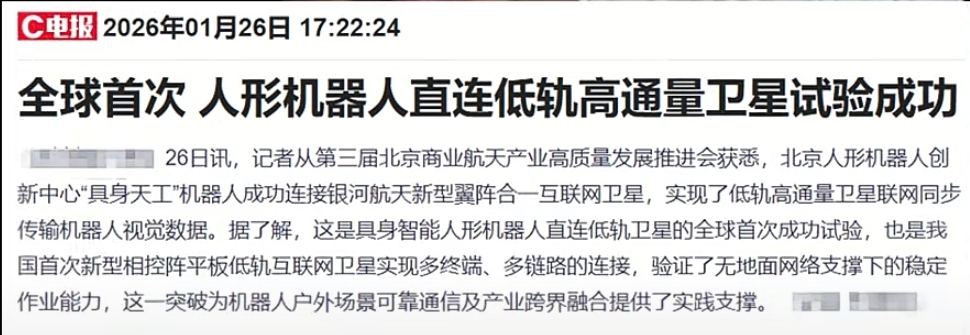 该新闻属于“商业航天”与“人工智能/人形机器人”的强强联合,是典型的“AI+航天”新质生产力题材。短期市场情绪会聚焦在直接受益的卫星通信芯片(华力创通)和机器人本体上。