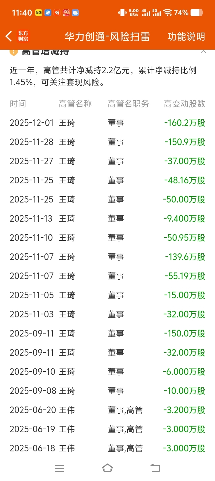 $华力创通(SZ300045)$ 这个姓王的缺棺材本了么连续减持