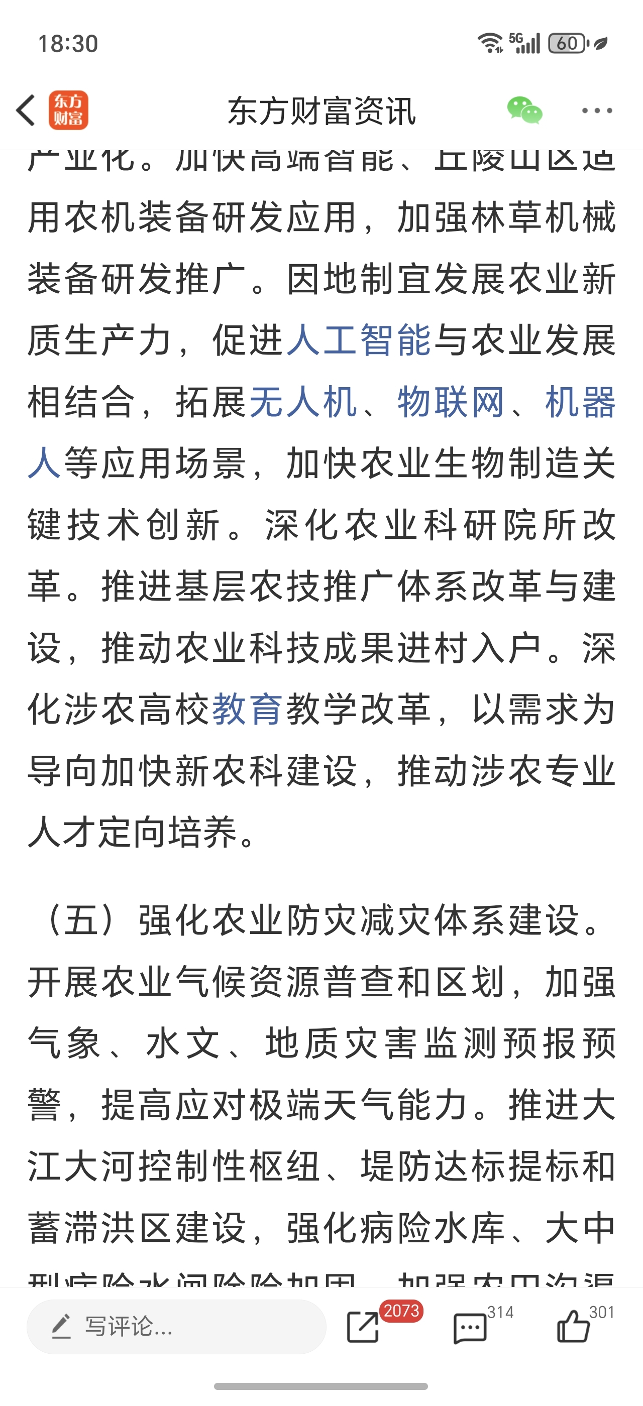 $华力创通(SZ300045)$ 中央一号文件再也不是只是农业的文件啦,强调人工智能与农业的应用