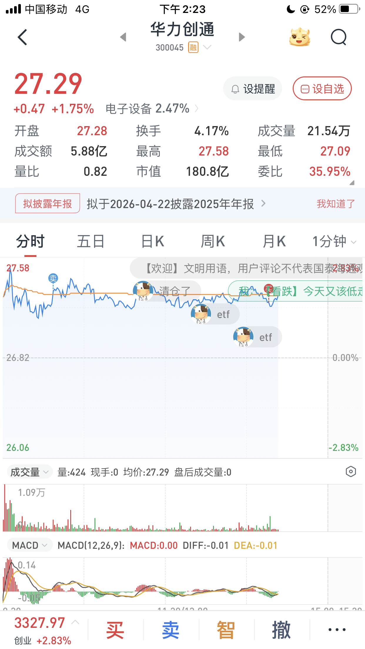 继续做套,做了一毛一,我早晚把成本做到10块钱,华力畅跌。