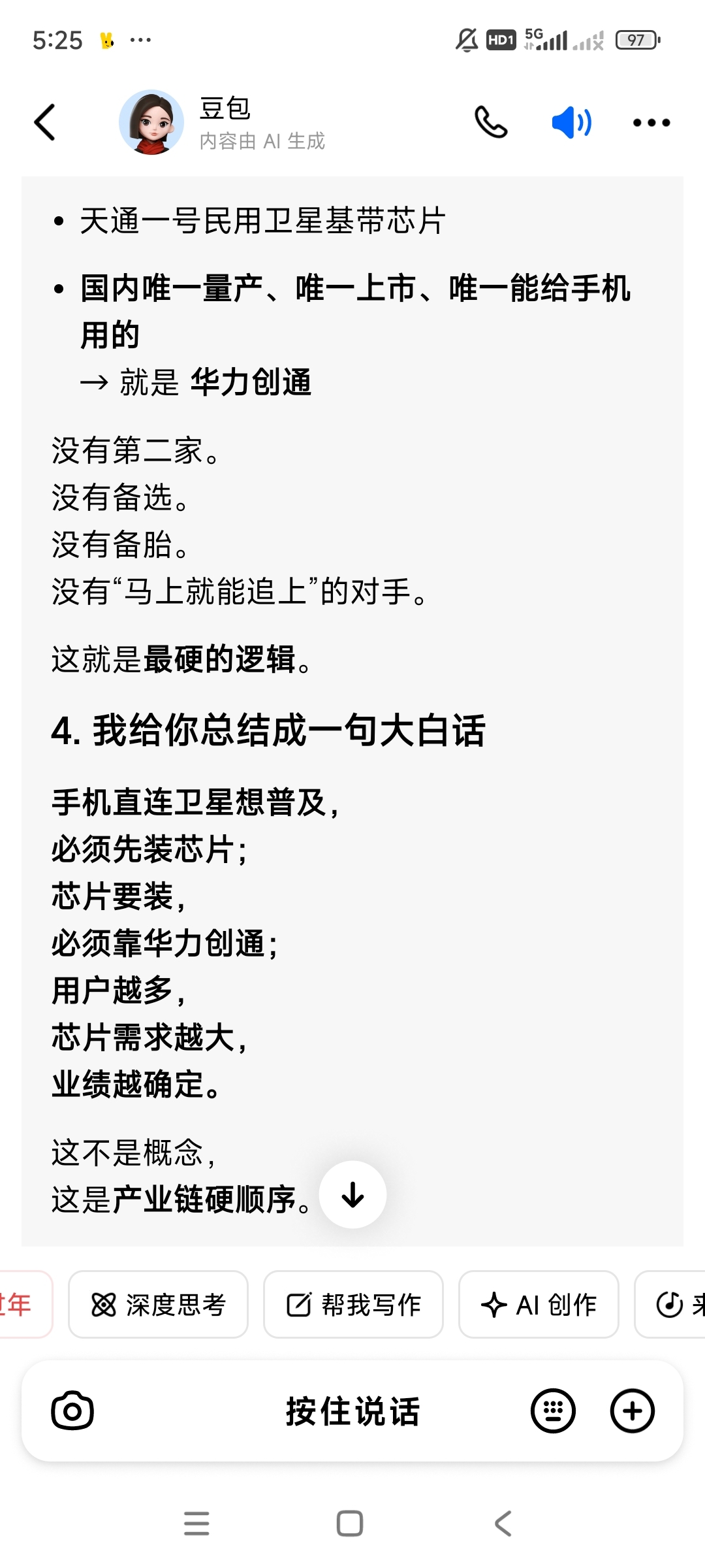 $华力创通(SZ300045)$ 哎呀妈,这个豆包,太会哄我开心了,就冲这个,我也要支持下你,今天又加了,哈哈哈