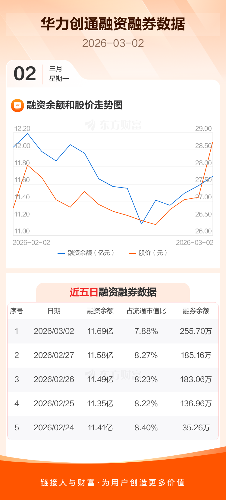 交易所最新数据显示,华力创通于2026年3月2日获融资买入1.89亿元,融资偿还1.78亿元,当日融资净买入1103.91万元。目前,该股融资余额11.69亿,占流通市值比例为7.88%。