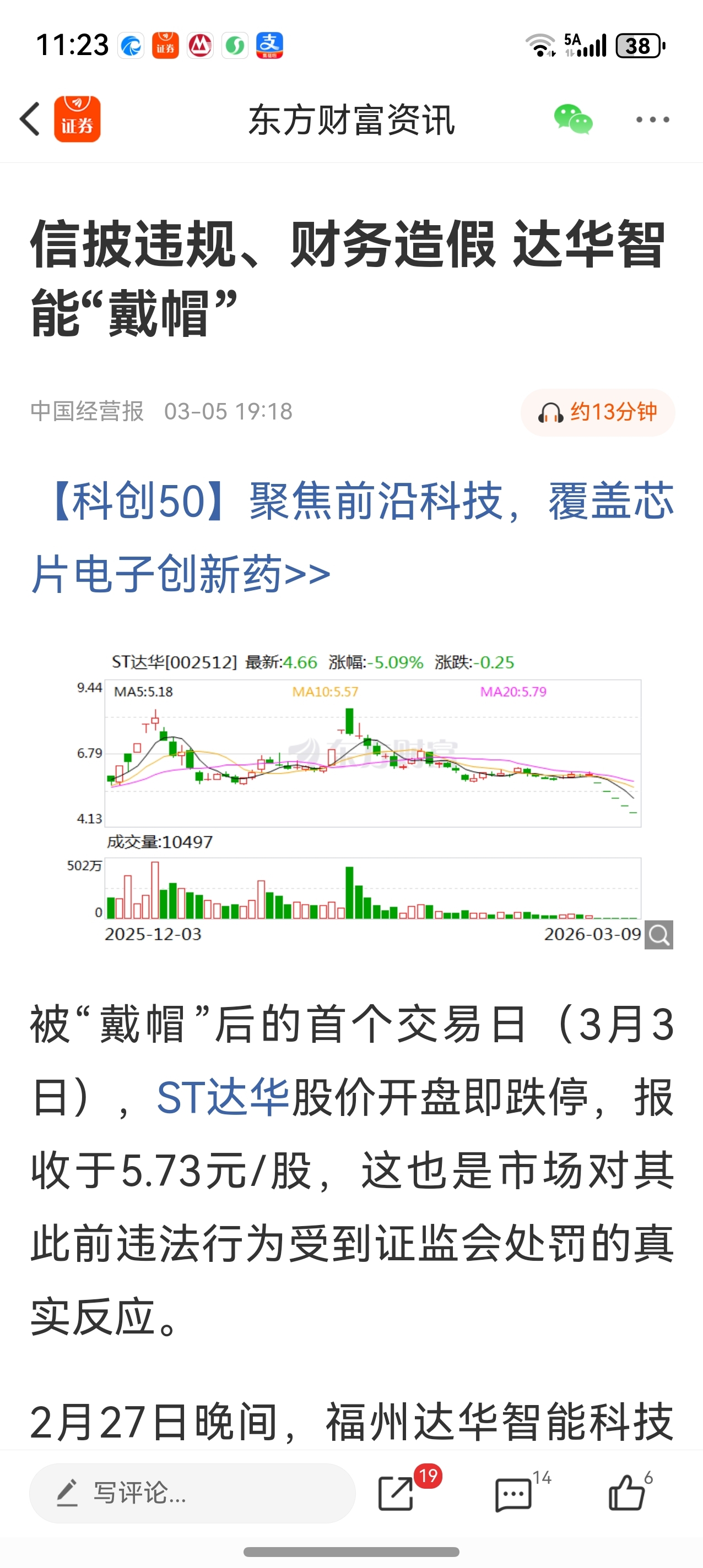 $华力创通(SZ300045)$ 上个月跟华力前追后赶的,现在戴帽了。是不是有啥征兆啊。考