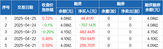 台基股份:融资净买入48.81万元,融资余额4.08亿元(04-25)