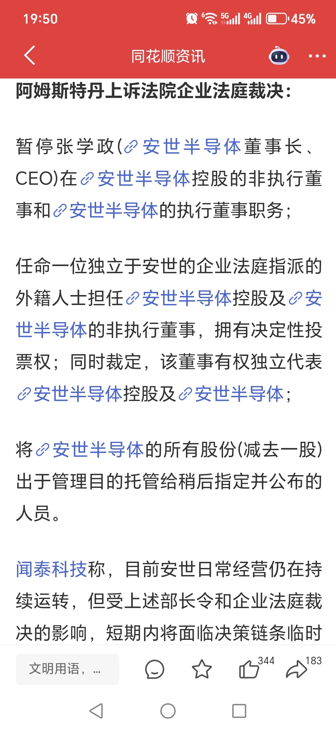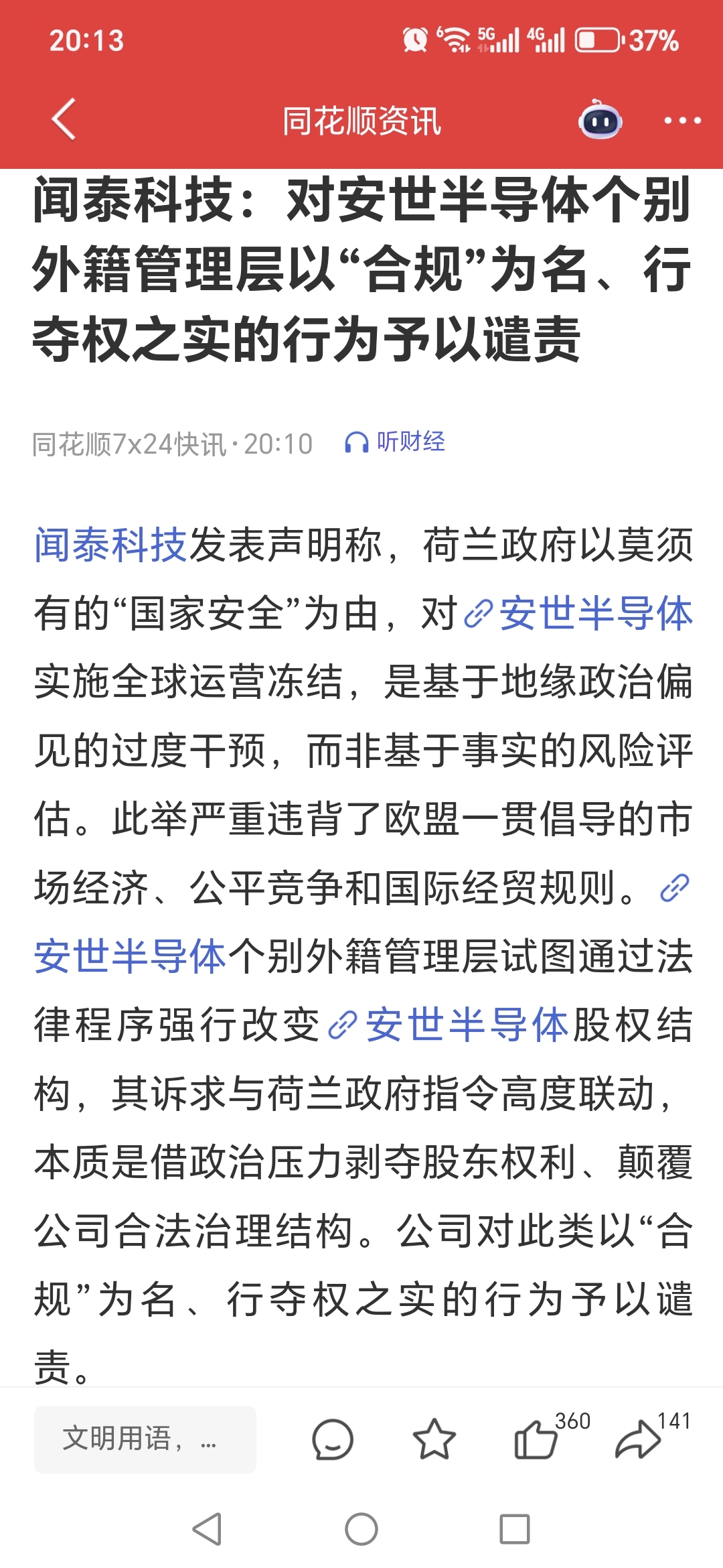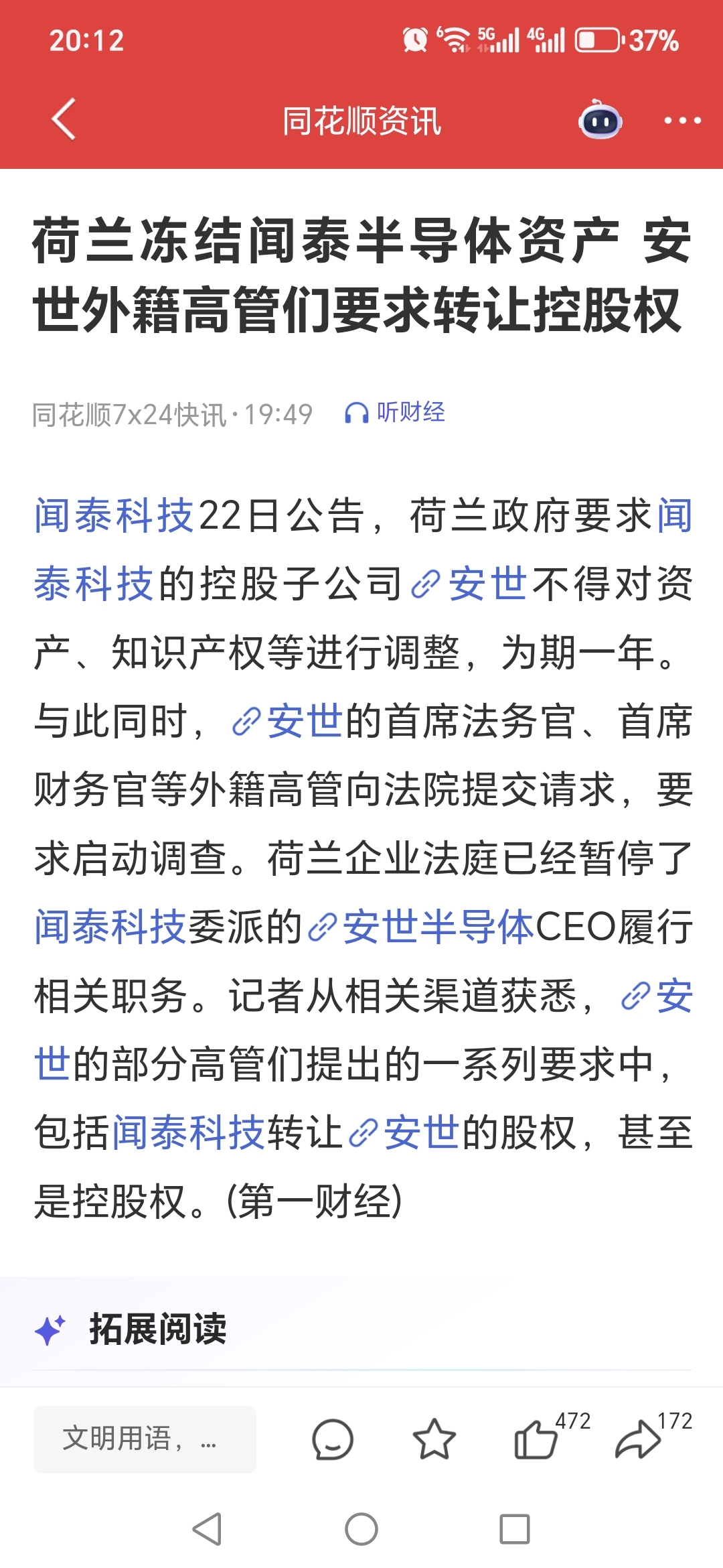 $台基股份(SZ300046)$ 如果闻泰科技失去安世半导体的控股权,安世在华业务肯定会大幅急剧下降,在国产替代大背景下,国内功率半导体订单肯定不会交给与国内毫无关联的外国企业。
