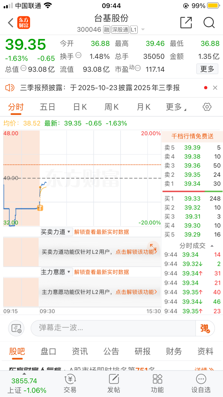 $台基股份(SZ300046)$ 开盘咬了一口,1.2差价赶紧跑,怕死。