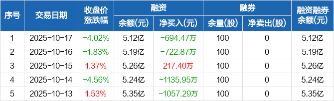 台基股份:融资净偿还694.47万元,融资余额5.12亿元(10-17)
