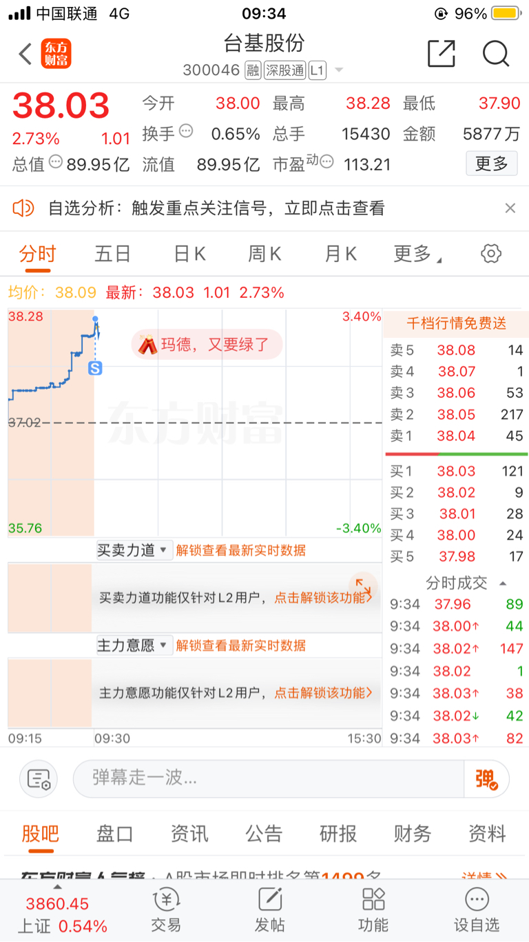 $台基股份(SZ300046)$ 星期五进的赶紧出来,怕怕的。