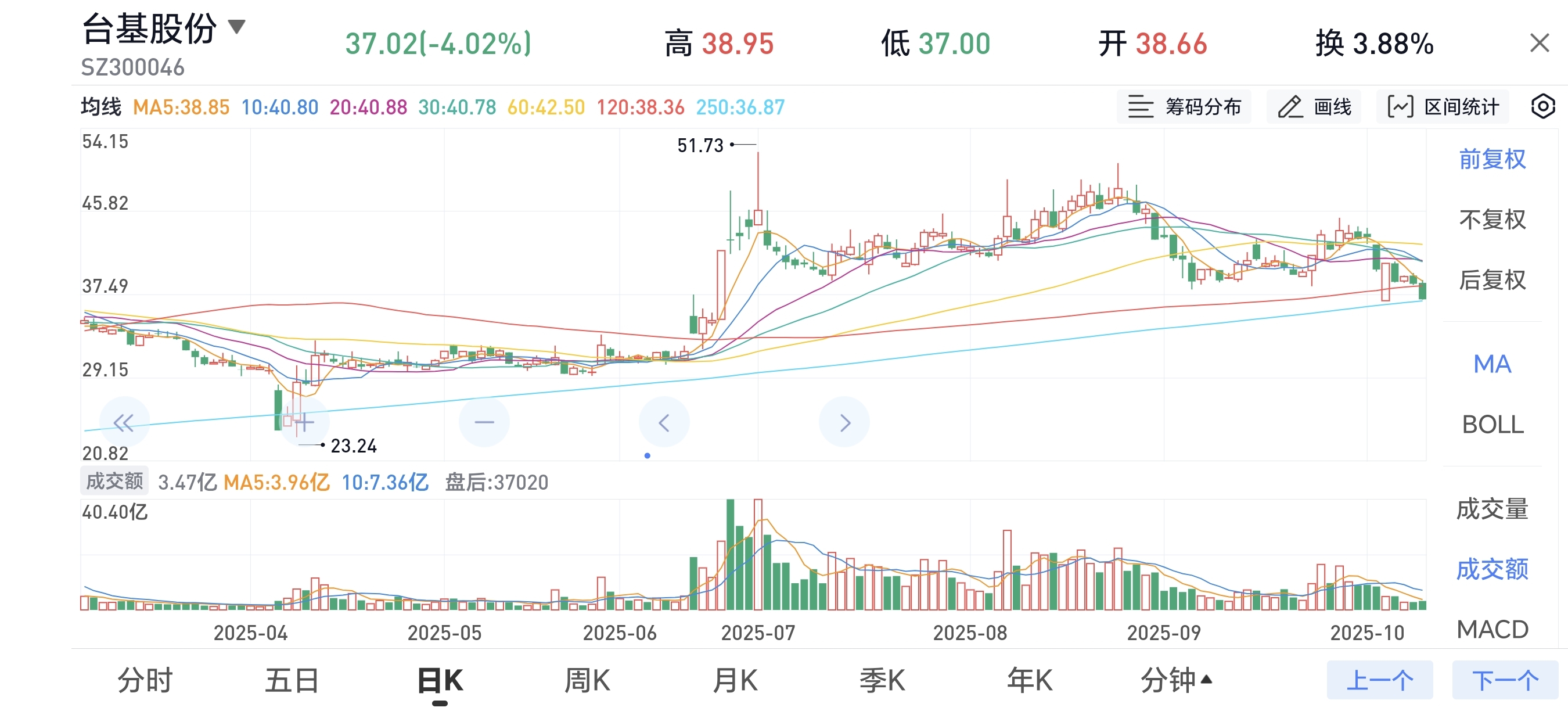 $台基股份(SZ300046)$ 这次也是250日线止跌