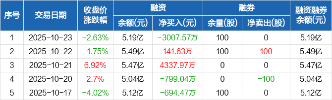 台基股份:融资净偿还3007.57万元,融资余额5.19亿元(10-23)