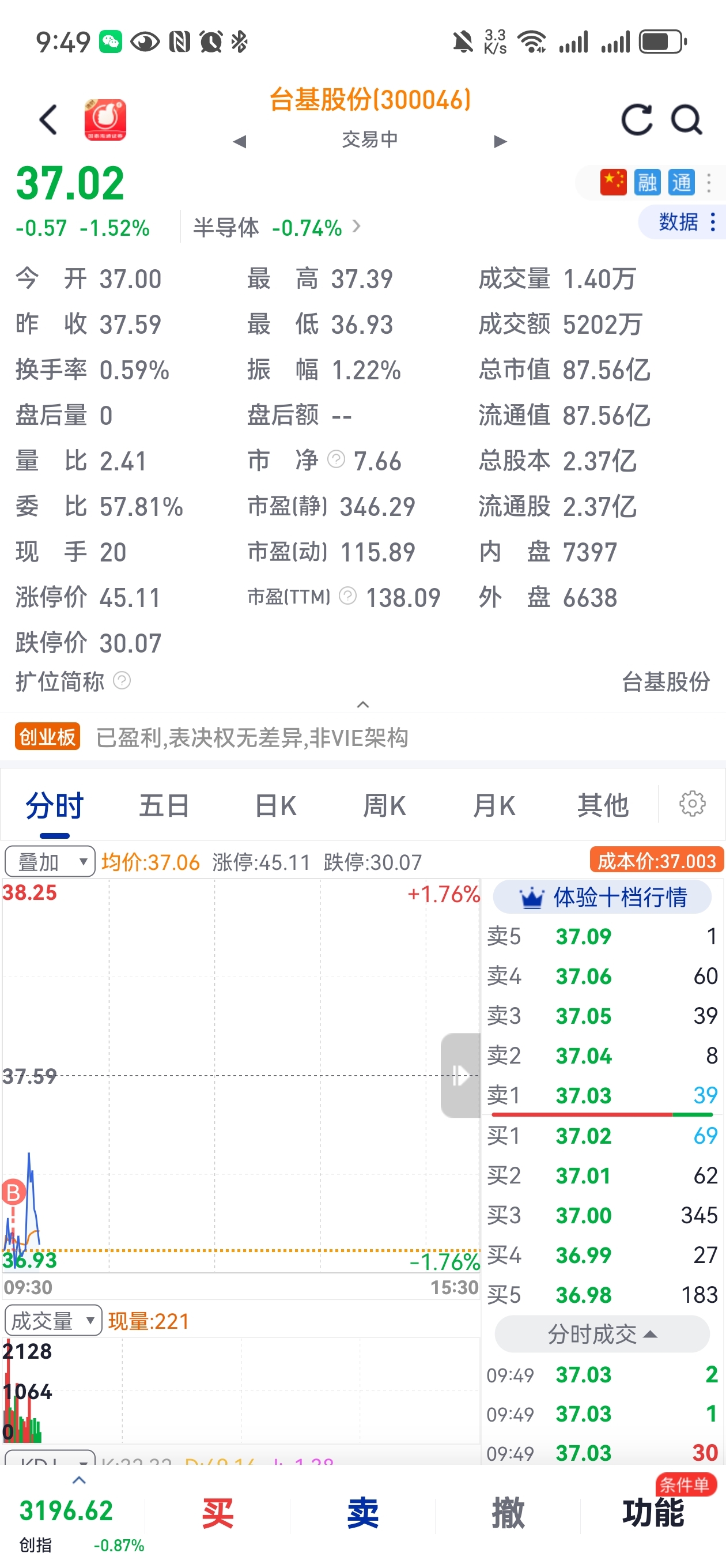 $台基股份(SZ300046)$ 昨天一个多点跑了。今天又回来买点