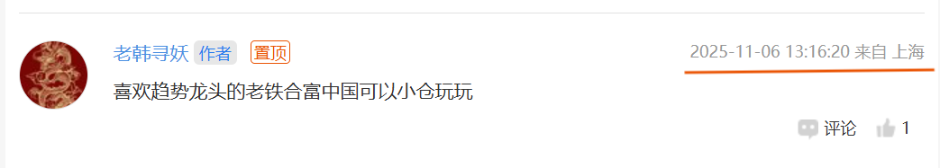 放量十字星,薅上的兄弟不要急,走的是趋势,爆量没拉升没跌就是好事,11块这个位置还震荡洗盘过4天,到今天涨幅并不大,保持均势的十字星就说明主力没有办法直接在这个位置出货,一定会选择继续拉,短线就是薅点!而且还有不少利好配上三季度营收几乎翻倍,错过合富的老铁不要在错过这个了,想玩短线就是要玩龙头,老韩抓板频率大伙是有目共睹的,不防关注点好,看上几天,再决定要不要跟着老韩薅。