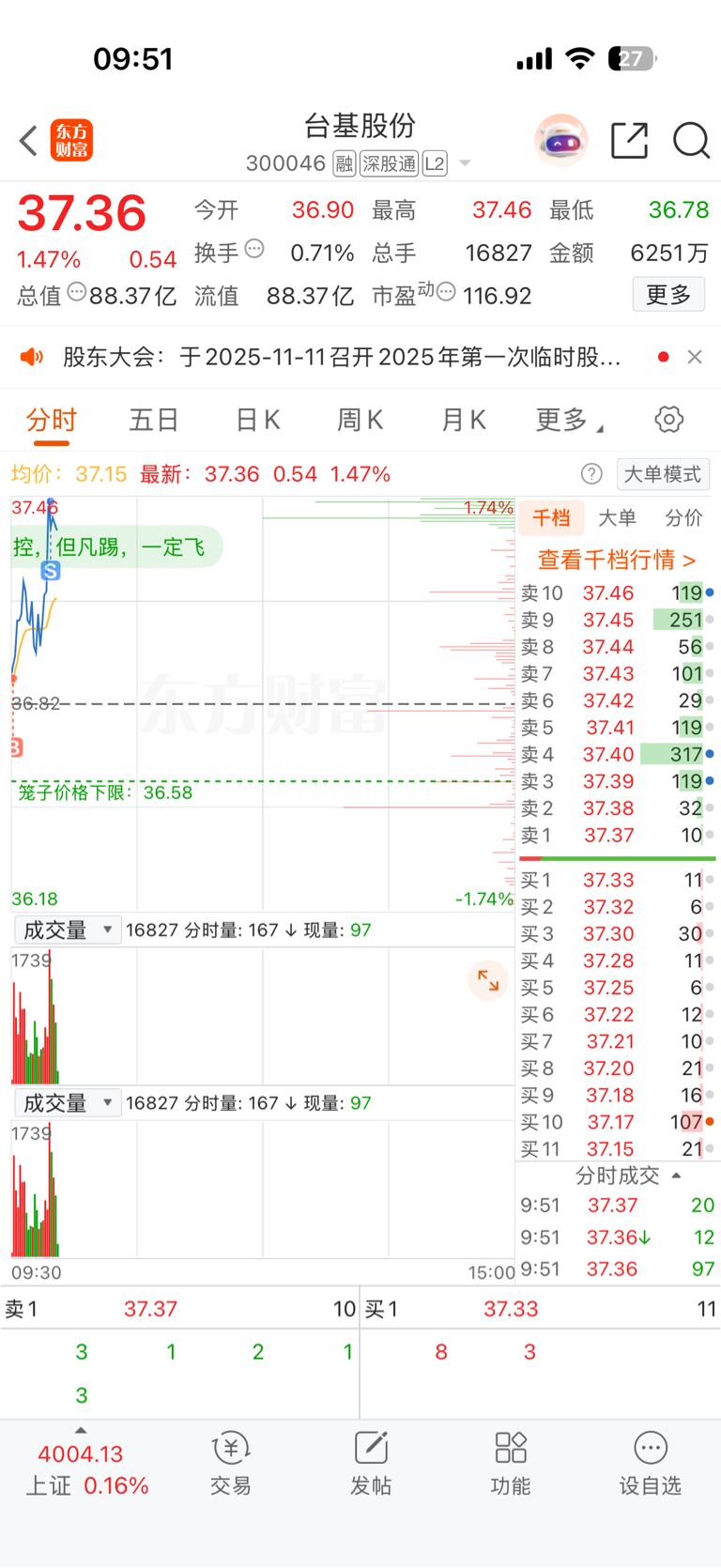 $台基股份(SZ300046)$ 做个t