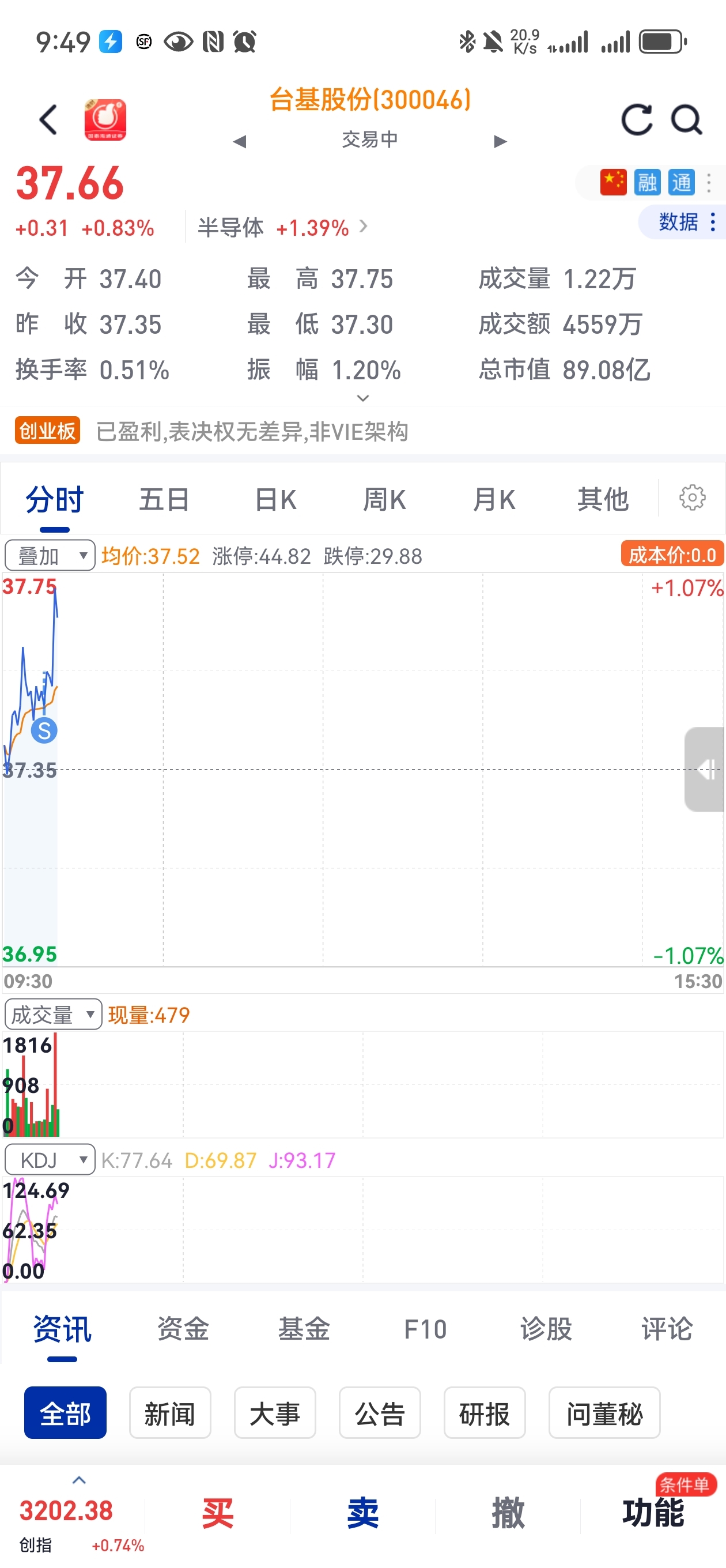 $台基股份(SZ300046)$ 36.9的成本,37.55卖了,上周五建仓的,终归是赚了