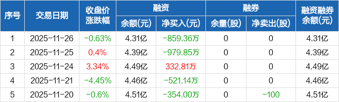 台基股份:融资净偿还859.36万元,融资余额4.31亿元(11-26)