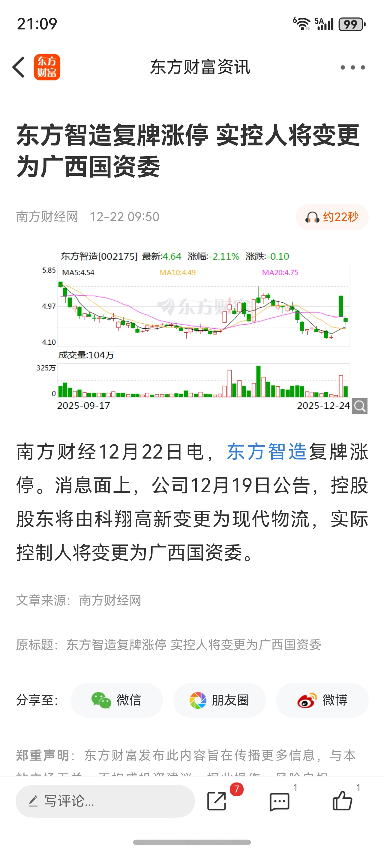 $台基股份(SZ300046)$ 东方智造改广西国资委控股2个板,台基一个板总有吧!