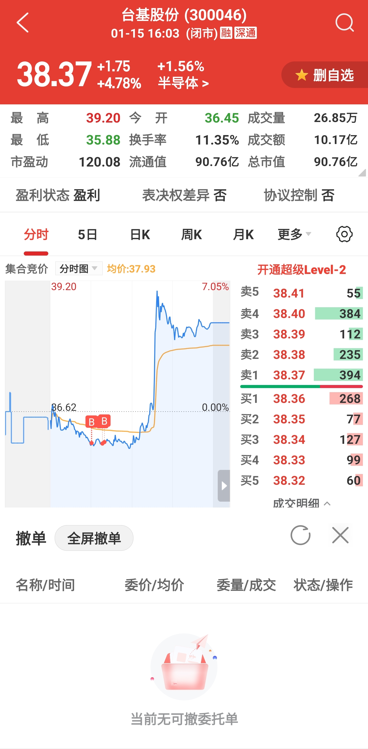 $台基股份(SZ300046)$ 今天刚来报道运气不错