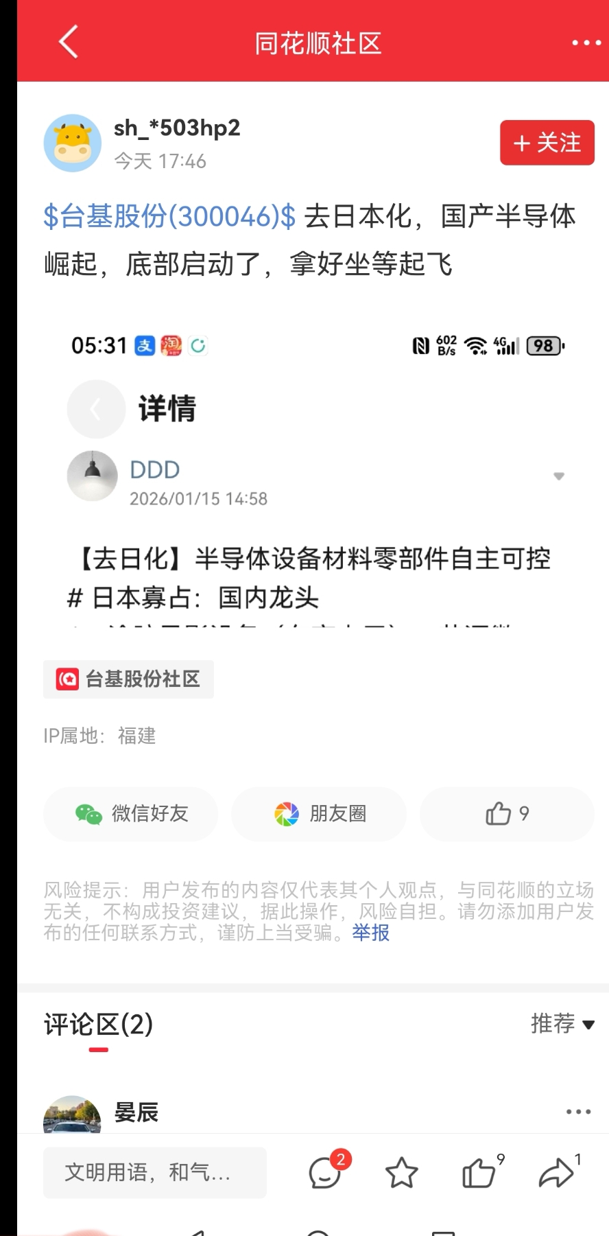 温馨提示: 1.根据《证券法》规定,禁止编造、传播虚假信息或者误导性信息,扰乱证券市场;2.用户在本社区发表的所有资料、言论等仅代表个人观点,与本网站立场无关,不对您构成任何投资建议。用户应基于自己的独立判断,自行决定证券投资并承担相应风险。《东方财富社区管理规定》