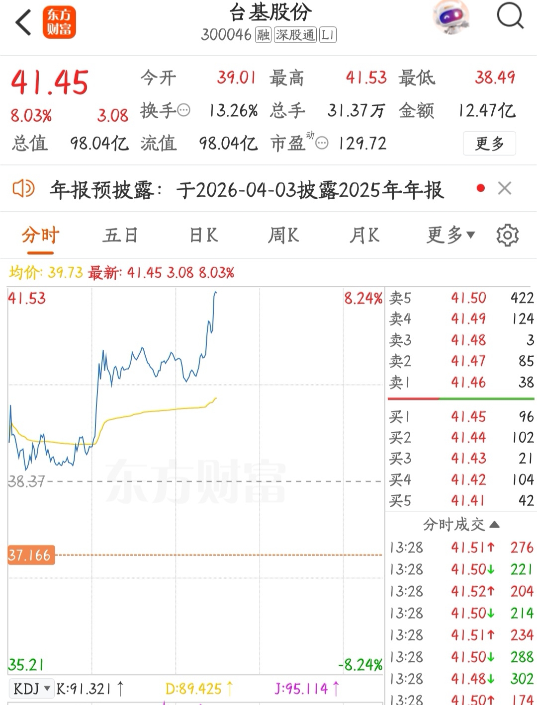 $台基股份(SZ300046)$ 前天出豆神入台基,刚好赶上