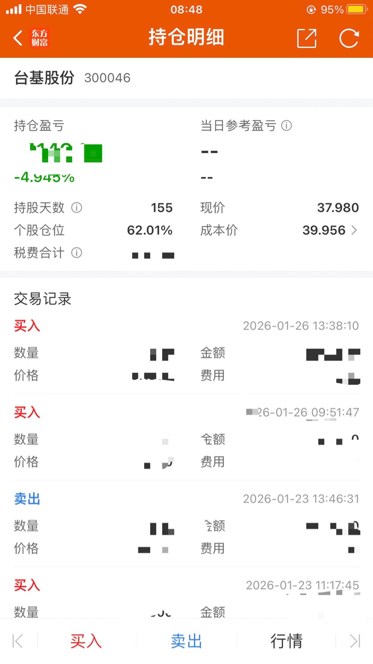 $台基股份(SZ300046)$ 47元多建仓,被套、解套、再入套,反反复复,我不信不创新高,哈哈哈