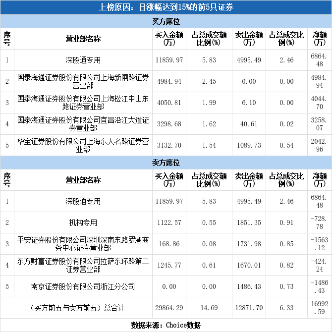 多主力现身龙虎榜,天源迪科涨停(05-06)