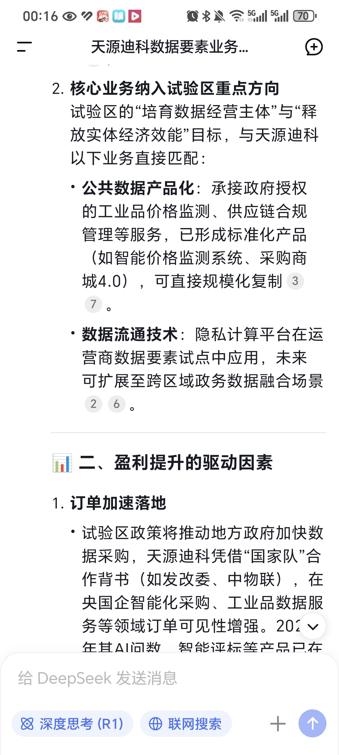 天源迪科稳的一批!大家多在DeepSeek上搜,数据越多越好