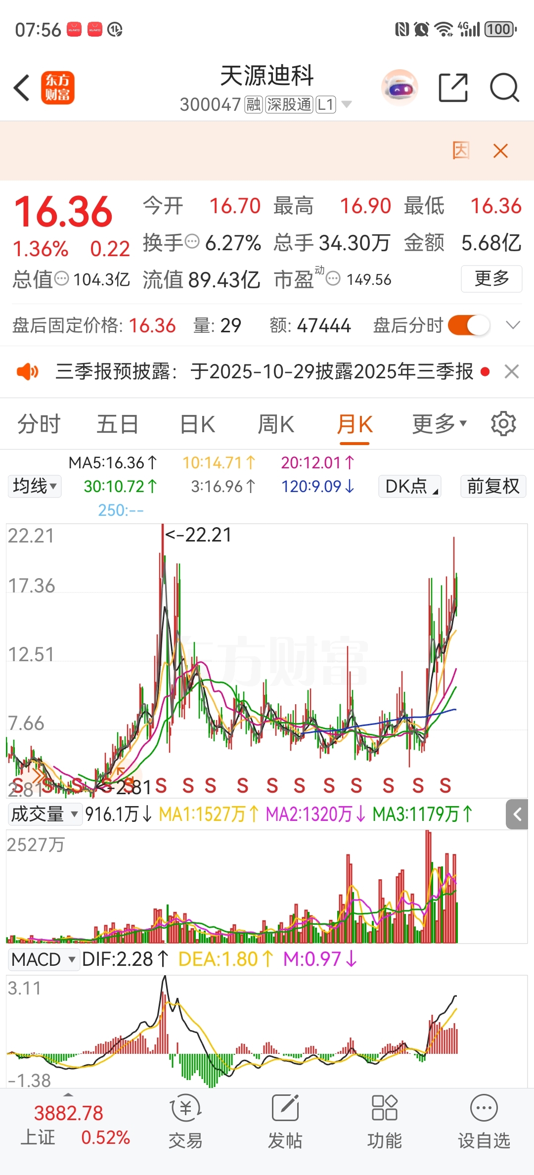 $天源迪科(SZ300047)$ 历史双顶,想进的请看下8月26日和9月18日走势。目前本人套近20个点。再次提醒,耗自为汁!