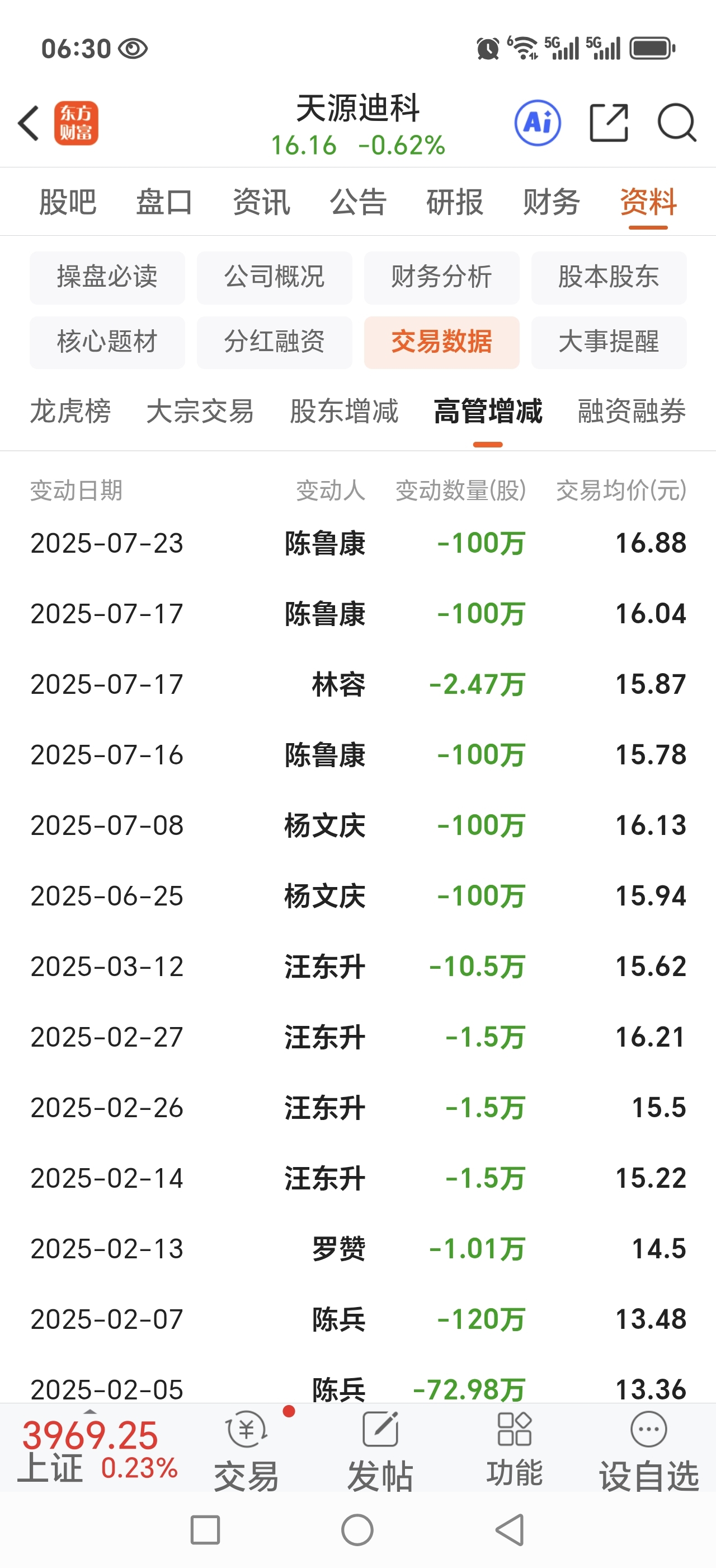 $天源迪科(SZ300047)$ 这个股票不涨的原因就是不管熊市牛市从13年开始高管一直在减持,大家可以查看一下,远离垃圾,拥抱趋势。
