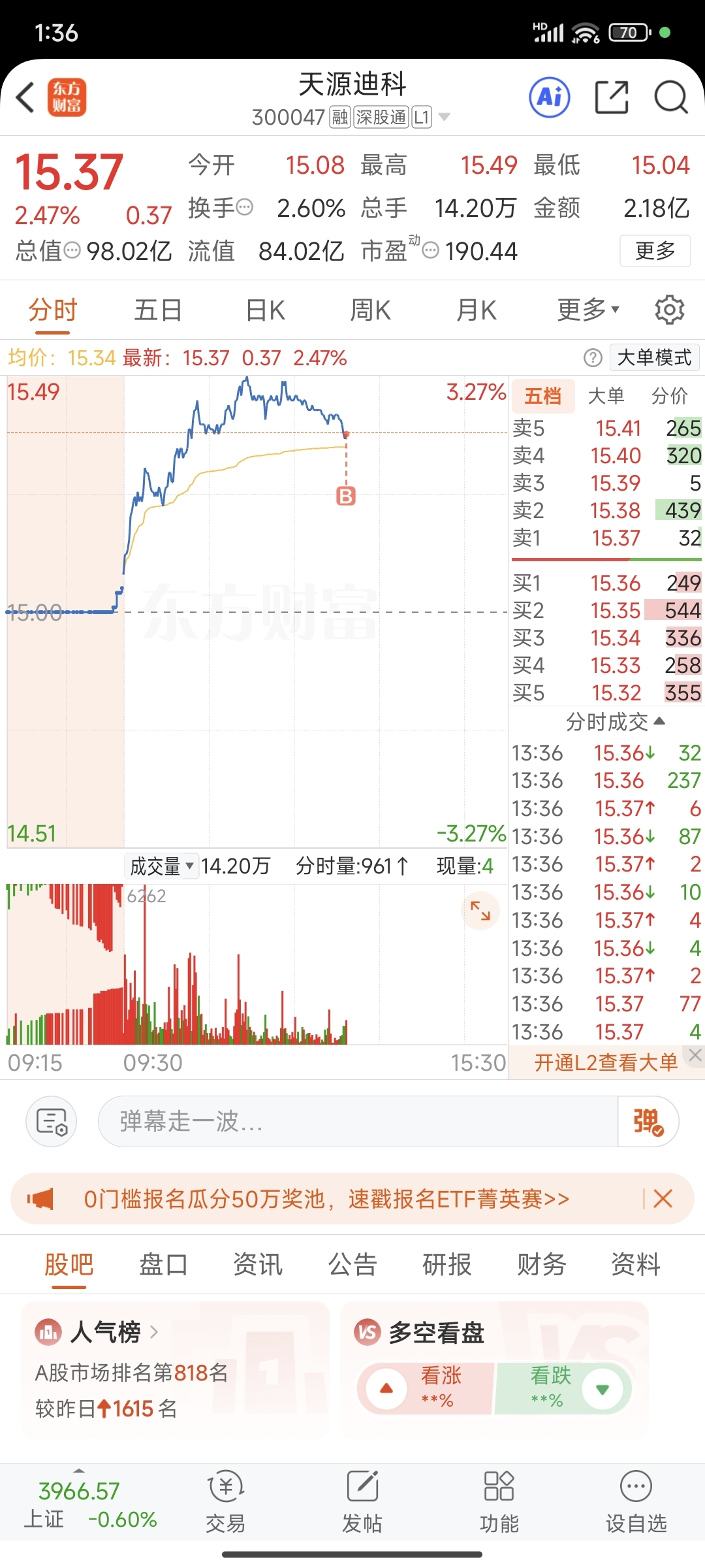 $天源迪科(SZ300047)$ 我又回来了,大家一起发财