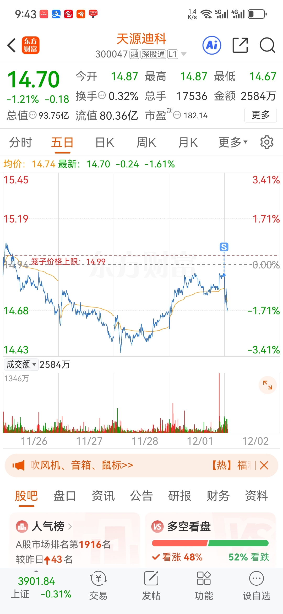 $天源迪科(SZ300047)$ 昨天清仓你也不涨,看来是真垃圾,去润和等涨停