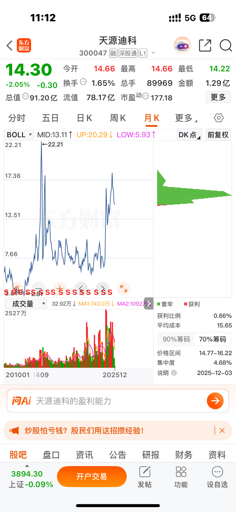$天源迪科(SZ300047)$ 月线这走势你能说他不好?只能说是你太着急了