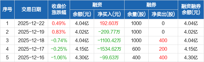 天源迪科:融资净买入192.6万元,融资余额4.04亿元(12-22)