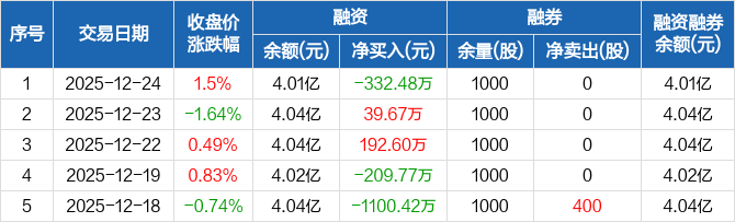 天源迪科:融资净偿还332.48万元,融资余额4.01亿元(12-24)