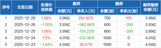 天源迪科:融资净买入292.92万元,融资余额3.96亿元(12-29)