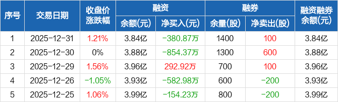 天源迪科:融资净偿还380.87万元,融资余额3.84亿元(12-31)
