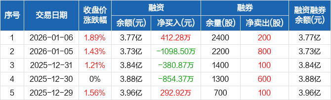 天源迪科:融资净买入412.28万元,融资余额3.77亿元(01-06)