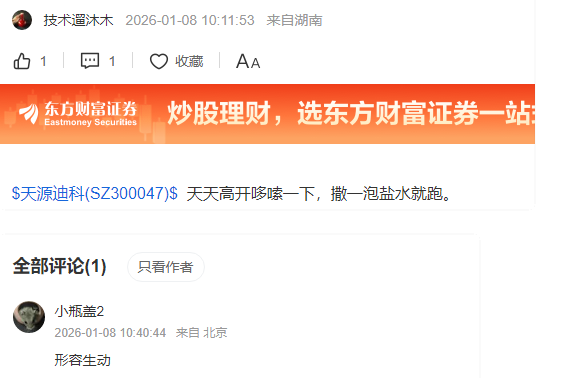 温馨提示: 1.根据《证券法》规定,禁止编造、传播虚假信息或者误导性信息,扰乱证券市场;2.用户在本社区发表的所有资料、言论等仅代表个人观点,与本网站立场无关,不对您构成任何投资建议。用户应基于自己的独立判断,自行决定证券投资并承担相应风险。《东方财富社区管理规定》