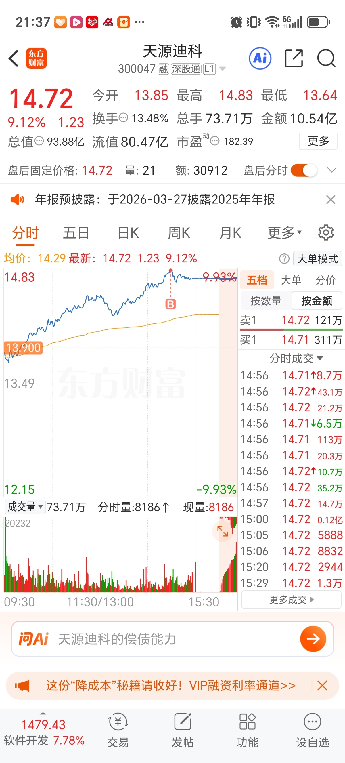 $天源迪科(SZ300047)$ 我去,买在最高点了,主力咋就这么精准就套住我了?