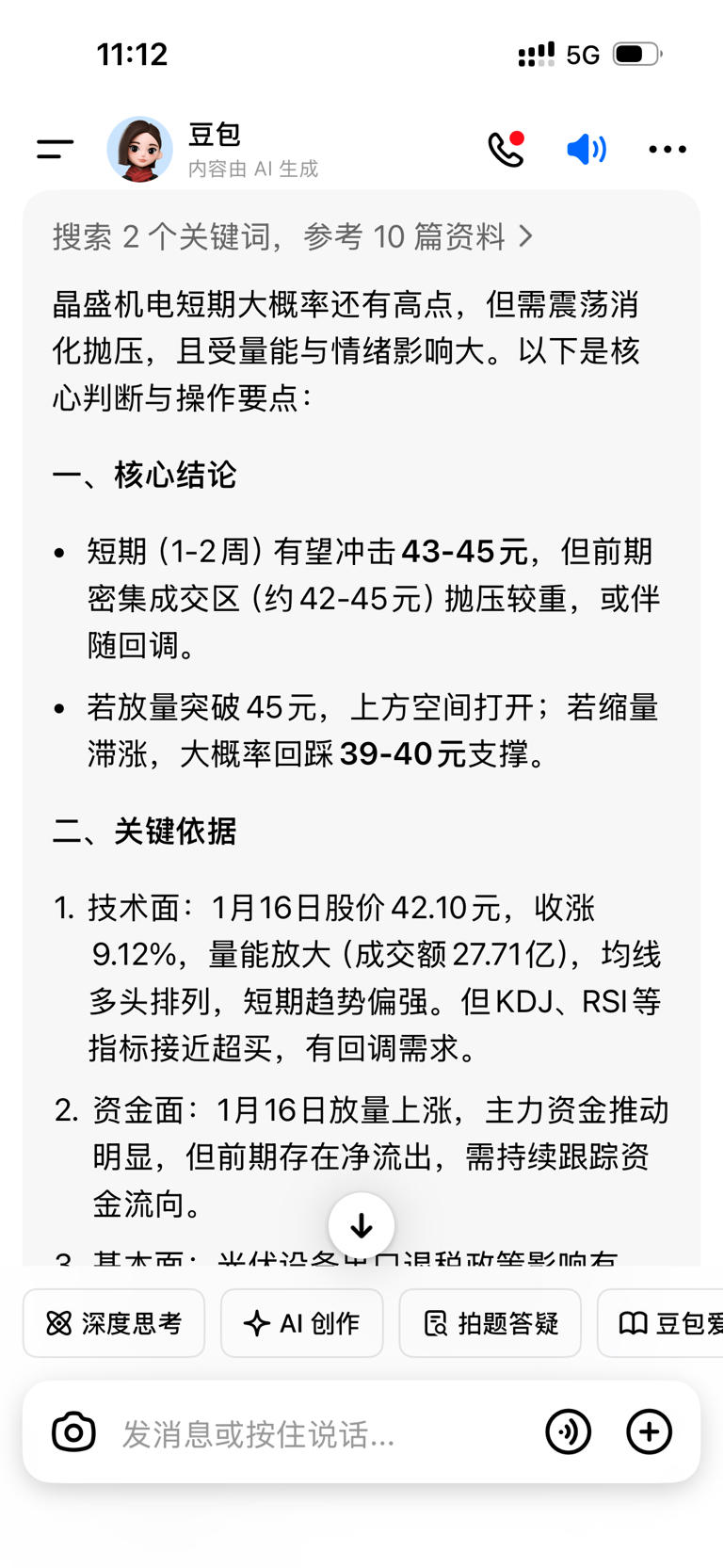 比如晶盛机电下周肯定到45元豆包说的我周五提前买入