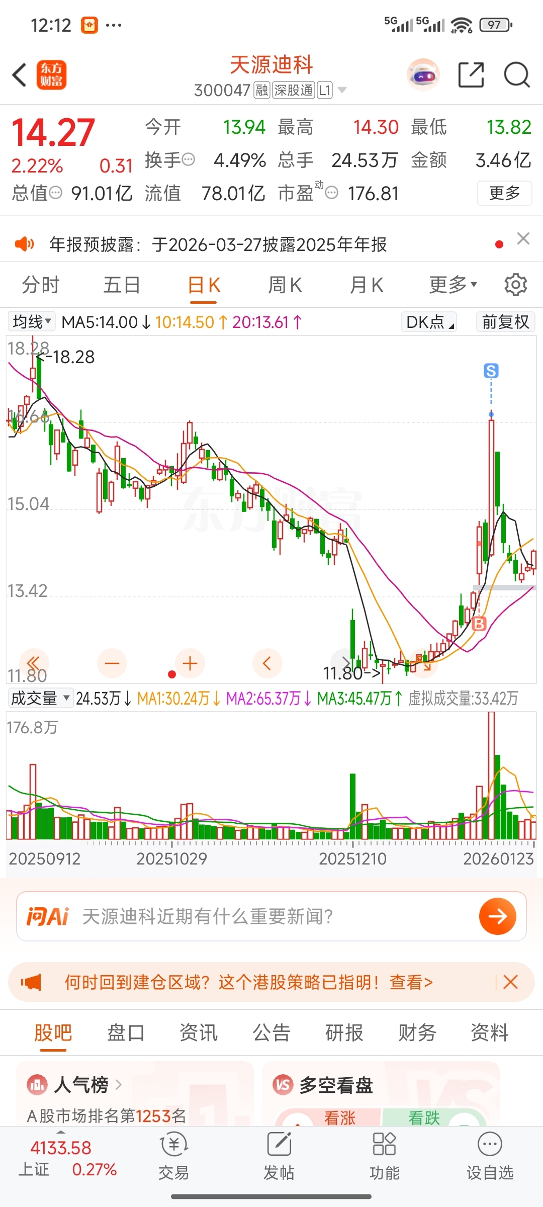 $天源迪科(SZ300047)$ 上次赚了快20%,下午打算半仓再接回来,看好明天