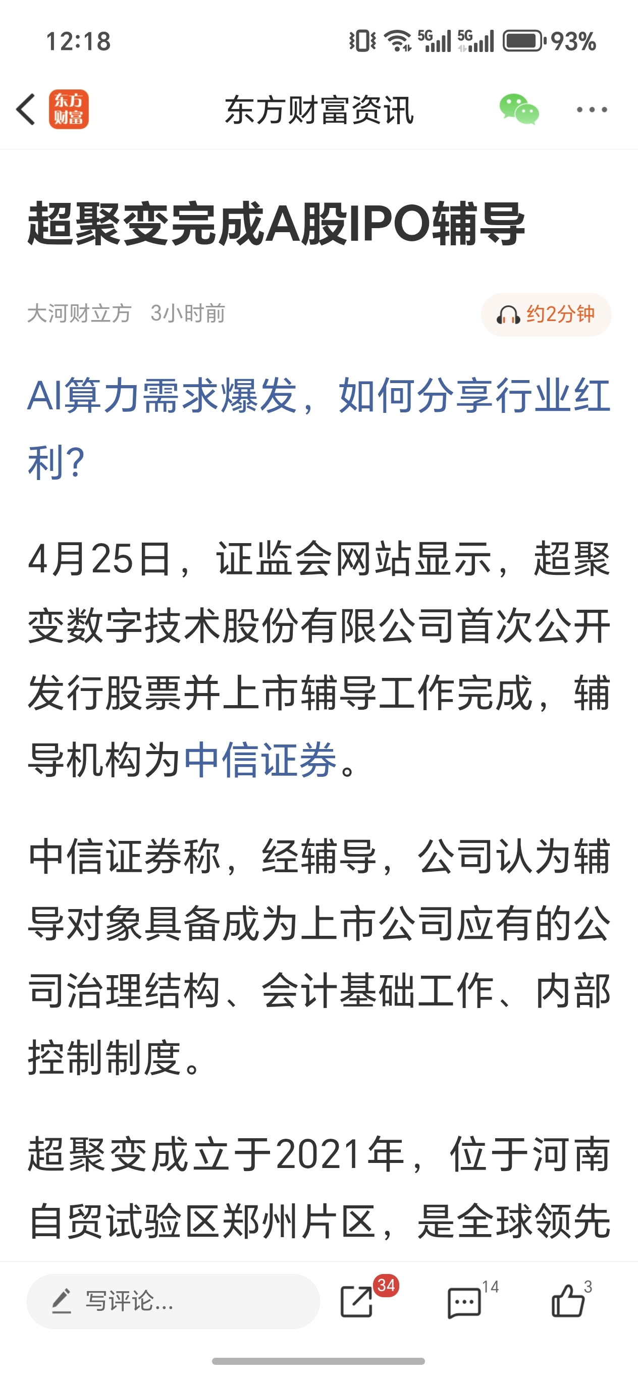 $天源迪科(SZ300047)$ 超聚变要IPO上市了