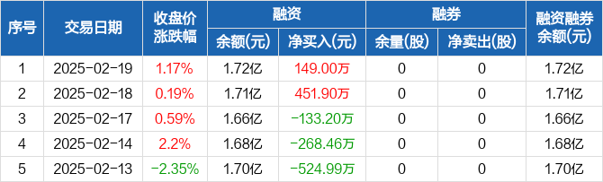 合康新能:融资净买入149万元,融资余额1.72亿元(02-19)