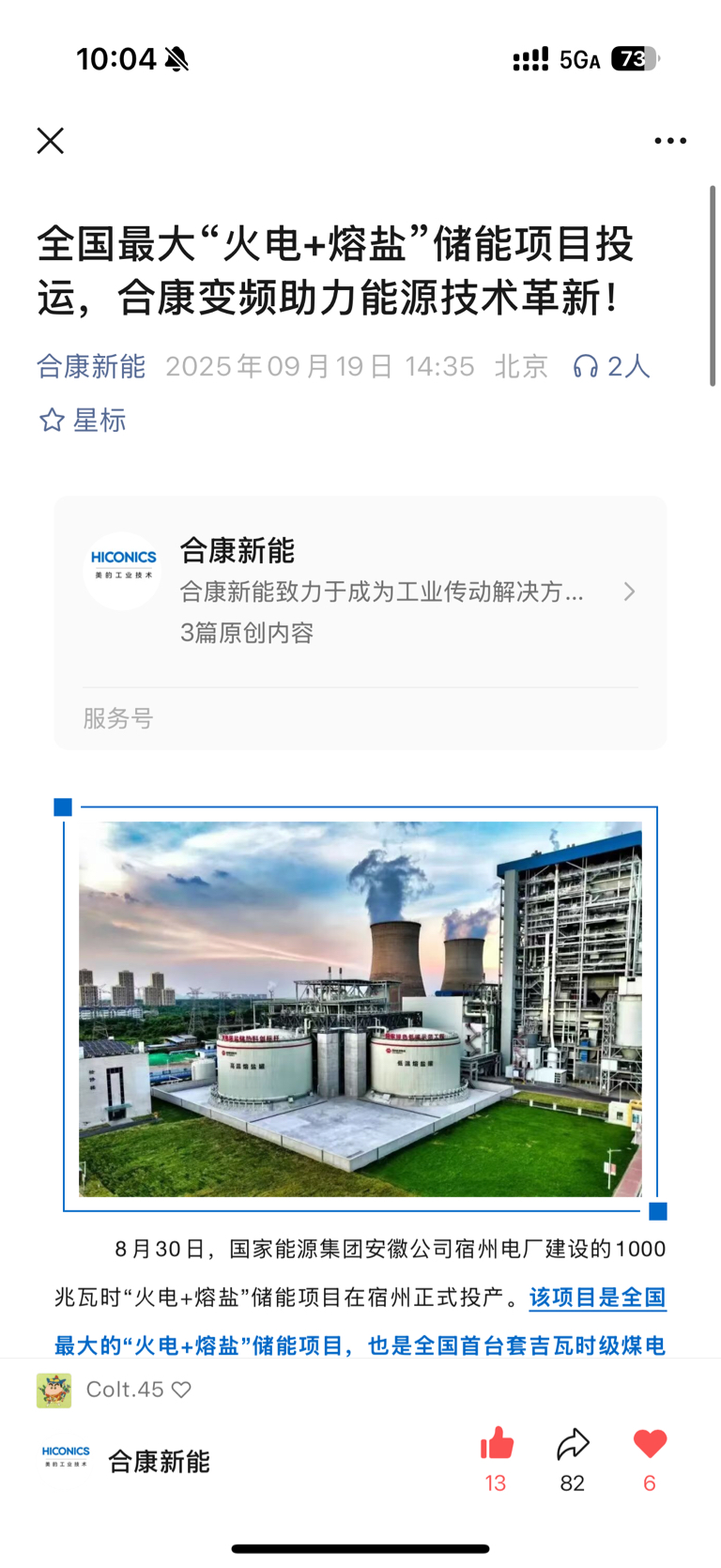 $合康新能(SZ300048)$ 为全国最大熔盐储能项目供变频调速装置
