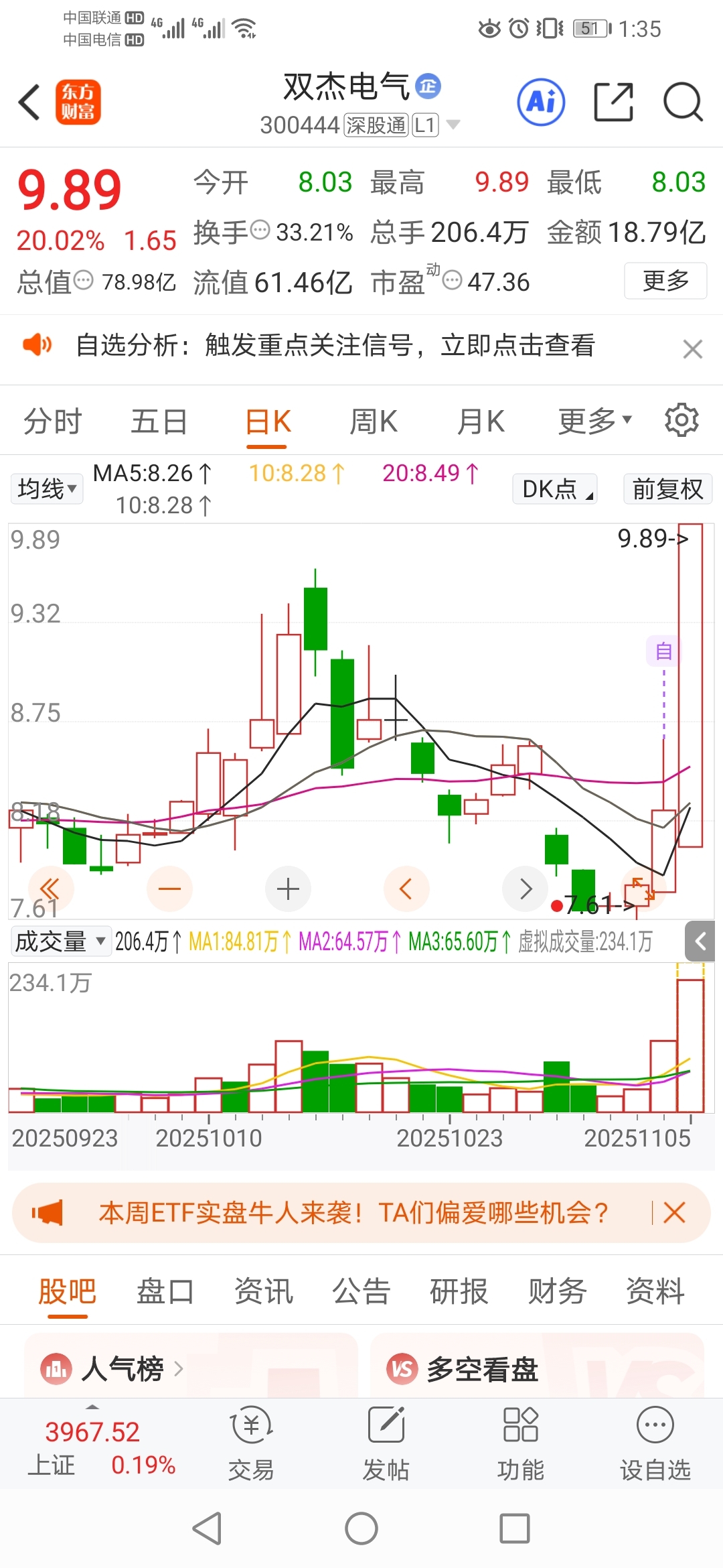 $合康新能(SZ300048)$ 昨天选的双杰今天反包没买,最后买了合康这垃圾!!!