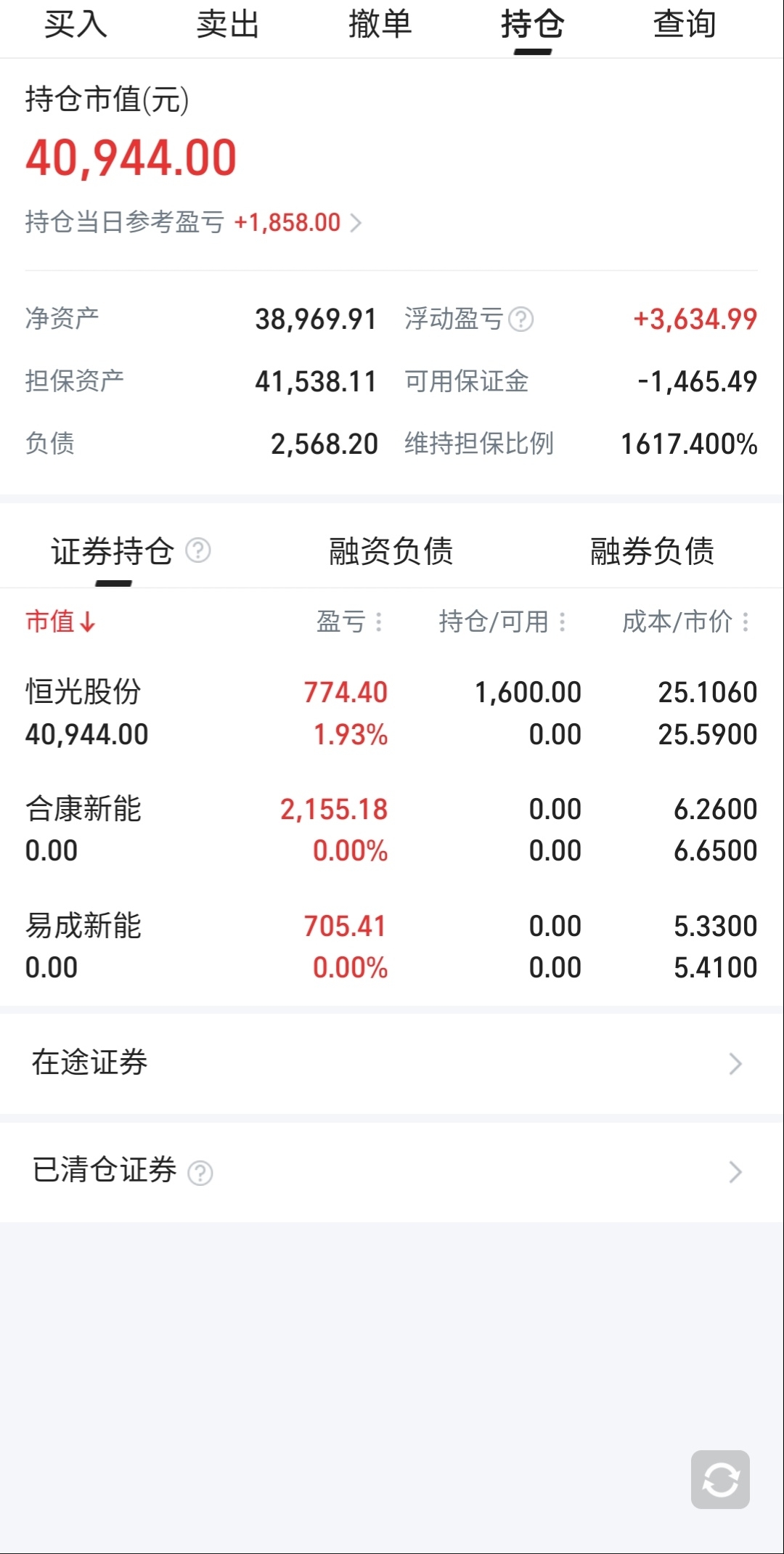 3万3年一千万短线第三天先出的担保品,后面出易成新能,放不出融资,只能这样了,最